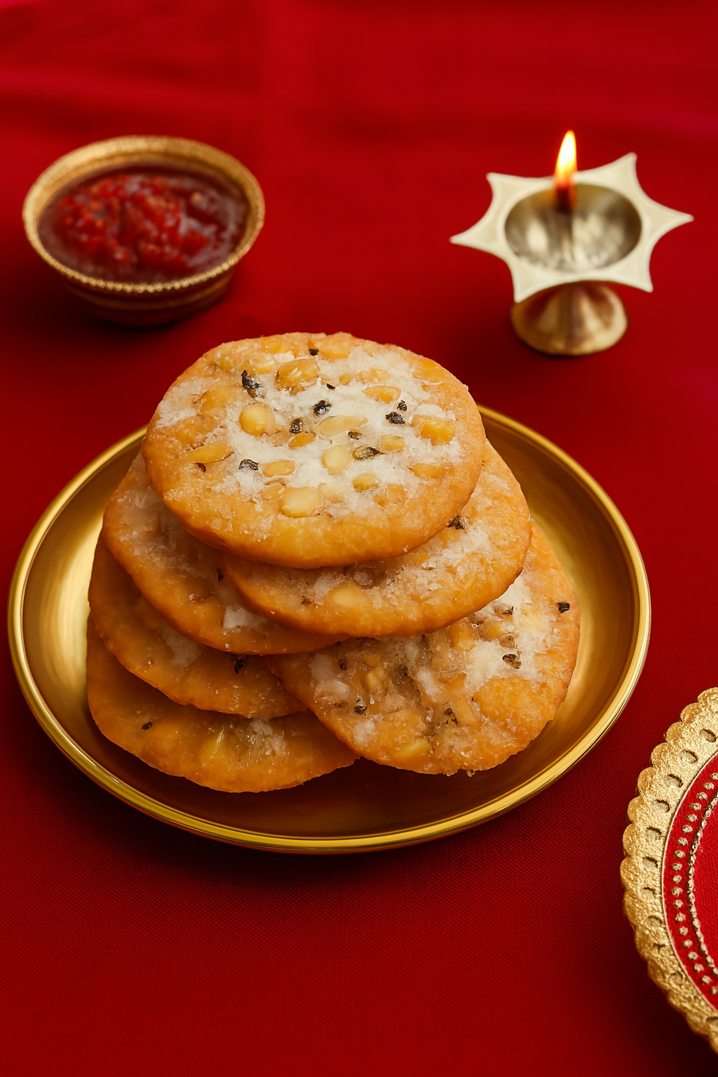 Celebrate Karwa Chauth with our classic Feeki Mathi—crispy made with love and tradition. Perfectly spiced and golden-fried, they add warmth and crunch to your festive thali.